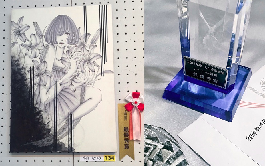 デザイン専攻に進んでから学内外のコンテストに選ばれたことです。学内では文化祭のショープログラムとファッション画コンテストの二つ。どちらも1年次から憧れていて応募していましたが全然ダメで、3年次でやっと夢が叶ってうれしいです。学外では新宿区が主催する「新宿ファッションフィールド」でデザイン画による審査が通って実物作品を制作。会場の舞台ででモデルさんが自分の作品を着て歩ている姿を見た時は感動しました。