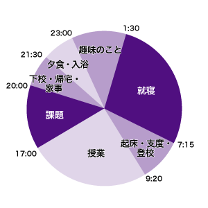 いつか女性に向けたスーツを仕立てる一人前のテーラーになれたら。メンズのディテールをたくさん盛り込んだ本格的なスーツがレディスは少ないと思っていて。だから憧れの地、英国のサヴィル・ロウで修行するのが大きな目標。最近、その地で初めて自分の名前で店を出した女性テーラーさんがいると聞いて、かっこいいなと。実際に行って自分の目で確かめたいです。まずは就職先でそれに向かって日々励んでいこうと思います。Q5.一日を円グラフで表すと?