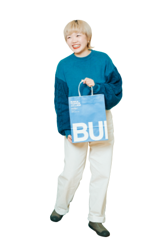 中学生の時、ファッション誌の着まわし特集をチェックするのが好きで、いつしかスタイリストの仕事に憧れを持つようになりました。文化の存在を知ったのは、母から「ここ知ってる?」と言われたことがきっかけ。オープンキャパスに何度か行ってみたりしましたが、決め手になったのはサマーセミナーです。スポーティーをテーマに、グループでコーディネイトを発表。それがあまりにも楽しくて、絶対に文化!と心の中で誓いました。