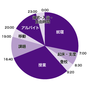 睡眠時間はしっかりとるように心がけ、夜の飲食店でのアルバイトも力を入れています。課題に関しては、家ではできない特殊な機械を使った作業が多いので、ギリギリまで学校に残ってすることがほとんどです。