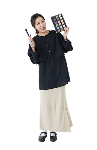 ファッションは服だけでなくメイクも重要だと気づき、私はこのコースを選びました。メイクアップの専門的な知識と技術が身につくほか、美容や健康に関すること、ネイルやエステ、さらに特殊メイクや企業コラボなど、このコースでしか学べない実践型の授業も充実しています。ファッションの勉強もするので、トータルコーディネートとしての表現豊かなヘアメイクを考えられるようになります。学んでいく中で美意識が高まっていき、クラスみんながきれいになっていくのも、このコースの魅力です。卒業した先輩たちは美容部員をはじめ、ウエディング会社の専属メイクアップアーティストやエスティシャンになっています。