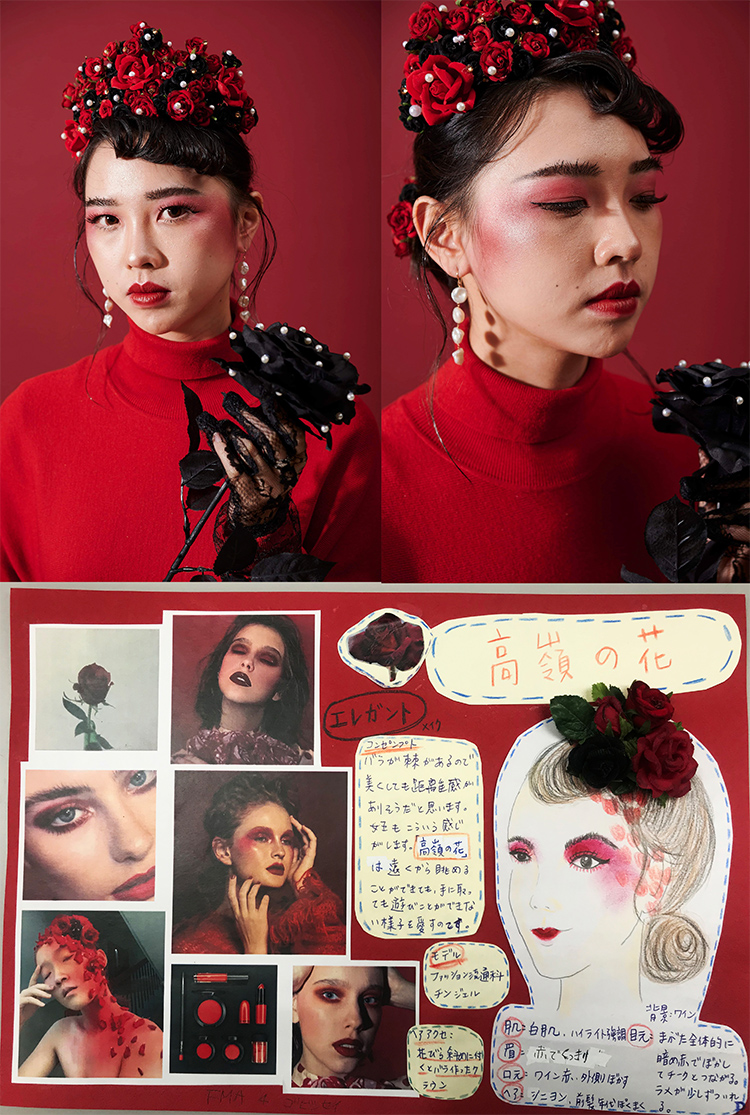 自立心を持ち、自分の行動に責任を持つようにしていました。意を決して会社を辞め、日本に留学したのでなおさらです。やる気のないまま学生生活を送ったら、たとえ無事に卒業できても身についたスキルは乏しく、自分が納得する職にも就けないと思います。ファッションの教育機関として文化は本当にすごい。真剣に取り組めば取り組むほど、自分にしかできない表現が生まれてきます。特にこのコースは美容系の学校とは違い、ファッションとしてのメイクアップを提案できるのが強み。就職の面接でも有利だと思います。学生生活は長いようであっという間。自立心を忘れずにたくさんのチャレンジをしてください。