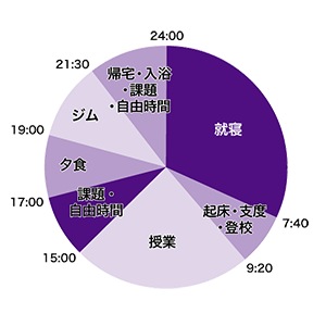 課題は毎週あるので計画的に取り組み、早めに提出するように心がけています。ジムに行って体を動かすことも私の生活では欠かせない習慣の一つ。休日は気になるカフェやレストランへ。