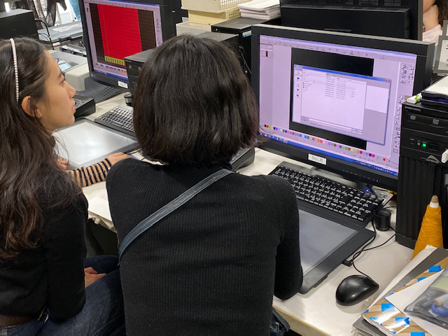1年次のファッション工科基礎科から2年次の進級で選択することができるニット専門の科です。ハンドからコンピューターまで様々な編み方のテクニックを習得し、企業に就職したらすぐに役立つノウハウも学びます。ここまでニットに特化したカリキュラムは珍しいみたいです。インターン先で工場に発注するためのニットの仕様書をお願いされた時、他の服飾学校に通っている人は書けませんでしたが、私は授業で教わっていたので書くことができました。編み物の経験がなくても全く問題ありません。最初、私もクラスメイトのほとんども針の持ち方すら知りませんでしたが、2年経つと、手元を見なくても編めるようになり、工業用の機械でオリジナルのテキスタイルをつくれるまでに成長します。服づくりとは違う醍醐味が。ニットに興味を持っている人には絶対にオススメです。