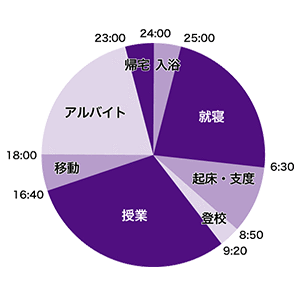 アルバイトは週4日。課題は授業中とバイトのない日の放課後に取り組むのがルーティンになっています。文化に入ってから集中力がアップ。息抜きは大好きなバンドのライブに行くことです。
