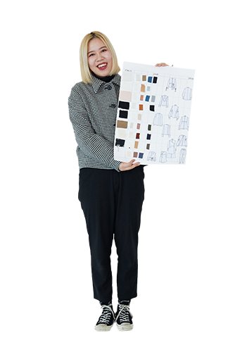 ニットデザイン科に入ってから、課題で手がける作品はリアルクローズを意識するようにしています。創造性あふれる作品も魅力的ですが、就職して手がけるのはリアルクローズですし、自分がつくって着て心地よく感じるのもリアルクローズだからです。そういった意味でも、マーチャンダイジングの授業はニット業界で働くうえで必要なことを勉強するので好きです。この授業で仕様書をたくさん書いて私にはこの仕事が合っていると気づき、将来それが自分の強みになると思いました。
