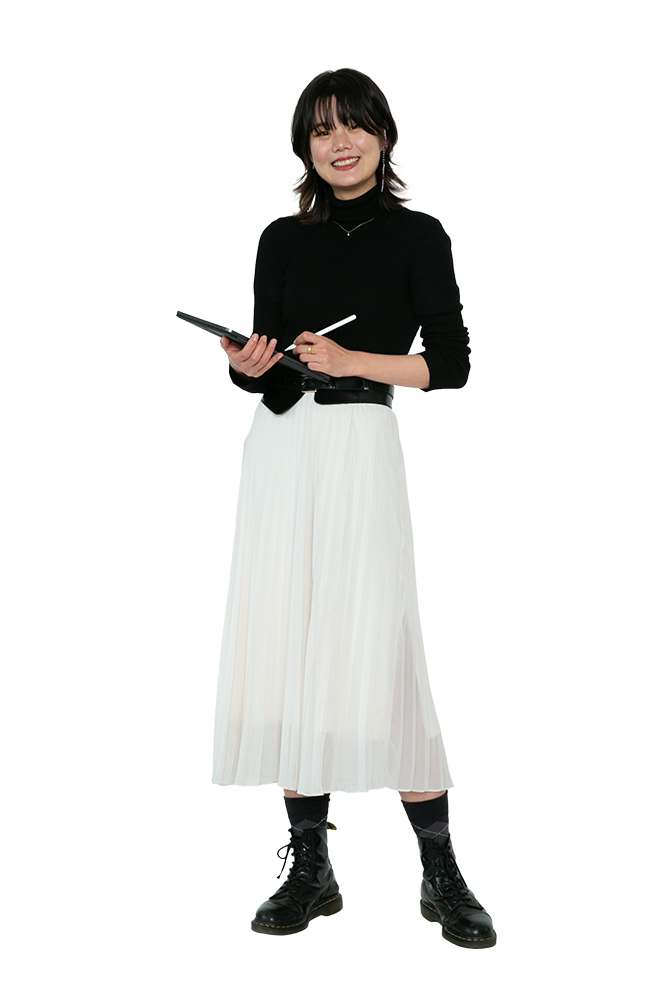 古着を入り口にファッションが好きになり、いつか自分の店を持ちたいと思っていました。高校を卒業後、アパレルで働く経験を積みながら学びたいと思い、夜間部のある学校を調べたところ、文化がいいなと。ファッションスクールといえば文化、とイメージする人も多いと思います。歴史があって実績もある。ファッション業界にたくさんの卒業生がいるので、昼間にアパレルの仕事をする際、もしくは自分が卒業した後も、文化生と言っただけで話が盛り上がって未来に繋がりそうだなと。それも決め手の一つになりました。