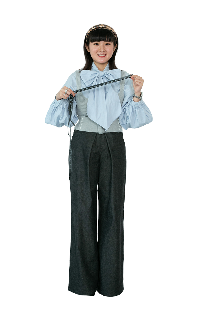 服づくりの腕を磨く上で、服の構造や縫製に興味を持つようになったのでこのアパレル技術科に進級しました。2年次はパターンの基礎的な知識と技術を学びます、そして3年次になるとパソコンでパターンを引くCADの授業が増え、パターン専用出力機のプロッターを使うようになるなど、企業で実際に行われている作業を実践的に身につけていきます。文化は充実した施設が魅力の一つ。パタンナーを目指す学生にとって、スキルを伸ばせる環境が整っていると思います。クラスメイトのほとんどはパタンナー志望ですが、デザインや表現の幅を広げたくてこの科に進んだデザイナー志望もちらほら。シルエットにこだわった服づくりを追求したい人にはぴったりの学科です。