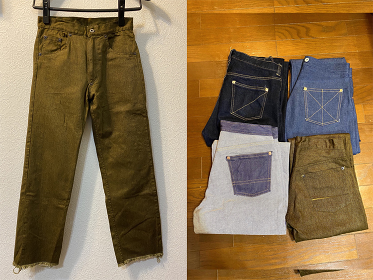 自分は文化に入るまで服をつくったことがなかったので、とにかく服をたくさんつくって経験値を上げるように心がけています。休みの日など家にいる時は、復習も兼ね、授業で習得した技術を使って服をつくるのがルーティーンになりました。今はジーンズに夢中。素材やステッチを変えるなどディテールにこだわって何本もつくっています。それから、アートや音楽などファッション以外のことに興味を持つことも大切です。美術館に行ったりギターを弾いたり映画を観たり。多くのものに触れて感性を磨いています。