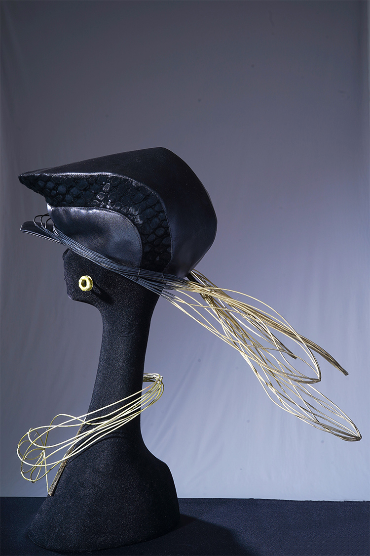 ジュエリー、バッグ、シューズ、テキスタイルの学科の教室が隣り合わせにあり、イベント時などには服づくりや流通系のクラスの学生ともかかわるので、トータルファッションの中での帽子の在り方を考える姿勢が自ずと身につくはずです。また、文化祭のファッションショーには日常使いの帽子にはない、高い創造性を求められます。それを表現するために、ジュエリー科の教室で金属を叩くこともあれば、シューズ科から革すき機を借りたりすることも。こうした経験を経て、既成概念にとらわれない自由な発想が頭の中から生まれてくるようになりました。帽子専門の学校や教室はありますが、帽子の枠組みを超えていろいろ試しながら学べるところはなかなかないと思います。