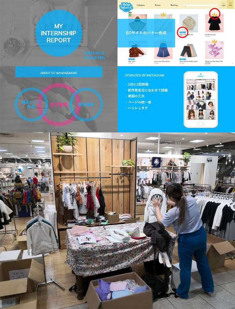 4年間、流通や小売の基礎に加え、グローバルビジネスや英語を学んでいきます。このグローバルがポイント。他の学科に比べると、ファッションをもっと広い意味でとらえ、ファッション=服だけではなく、アート、カルチャー、デジタル、世界情勢など様々な視点から学びます。しかもリアルタイムで起きている事例を切り口に授業が進むので、先生が話すことに説得力があり、自分の中でどんどん専門的な知識や技術が吸収されていくのがわかります。また在学中は長期インターン研修も可能。卒業時には高度専門士の称号を与えられるのも、この科の特徴です。