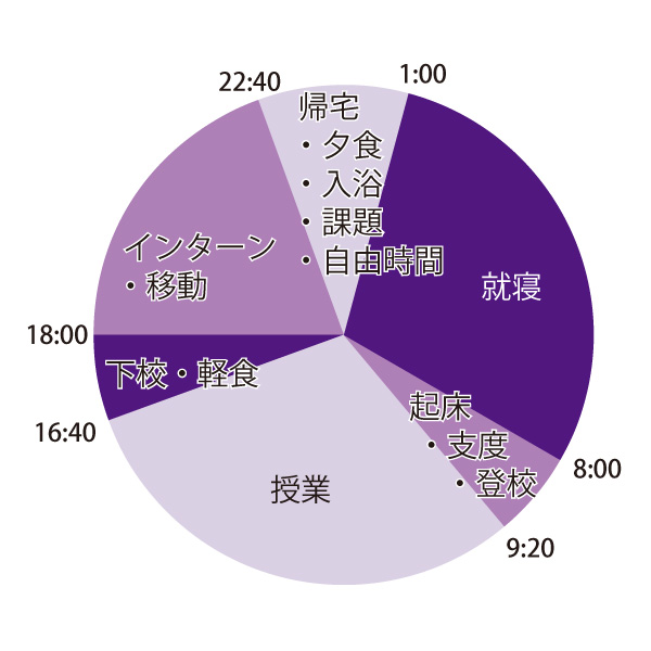 インターンは、週に1~2日通っていたこともあります。課題との両立のコツは、とにかく頑張ること(笑)!インターンがある日は課題を進める時間がとれないことも多く、少ない時間のなかで集中的に作業ができるように、気持ちの切り替えを大切にしています。休みの日は友達と買い物に行ったり、美術館に行ったり、カフェ巡りをしたり。友達に、これまで行ったことがないショップに連れて行ってもらうと、自分の知らないブランドや詳しくないジャンルの洋服に出会えるのでとても楽しいです。美術館や展覧会で受けた刺激が、服づくりのインスピレーションに生かせることもあります。