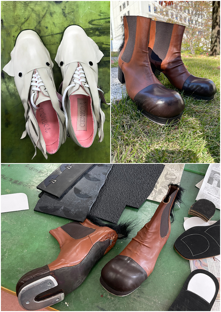 やっぱりシューズの授業が一番好きです。1年次は座学で靴づくりに必要なノウハウを習得しつつ、靴づくりの基本を身につけます。最初のうちはテーマに則した課題を重ねて経験を積みますが、靴の木型づくりも学ぶため、授業がすすむにつれ、よりデザイン性を追求した自由な靴づくりができるようになります。そして2年次になると、さらに実践的で自由度の高い課題が多くなります。僕の場合は、段階的に靴づくりを学ぶ中で着実に実力が付き、課題もどんどん楽しくなっていきました。今では、ブーツやスニーカーなど、自分が本当につくりたい靴をつくる技術が身についてきています。
