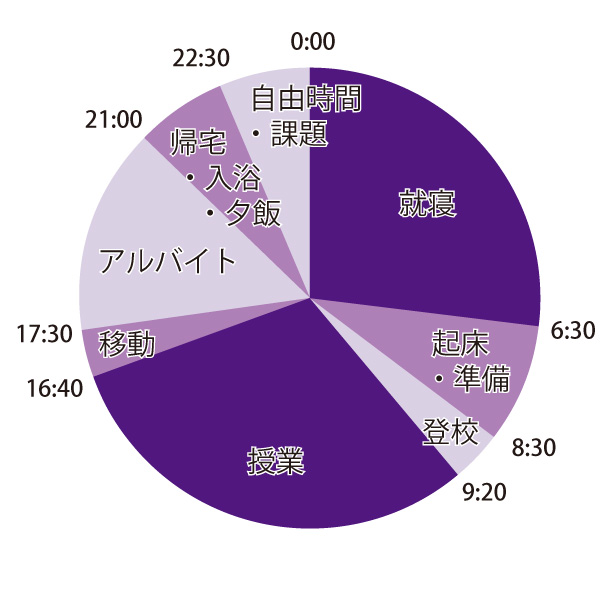 アルバイトでスーツ販売をしています。スーツの世界ではドレスシューズが重宝されており、アルバイトのときに自分もドレスシューズを履きますが、それがとても良い勉強になっています。入学前はスニーカーをよく履いていて、ドレスシューズにはさほど興味がなかったのですが、このアルバイトの影響で最近ではプライベートでもフォーマルな靴を履くように。また、接客を通してお客さまと触れ合うことが刺激になったり息抜きになったりして、学業にもポジティブな影響が出ていると思います。ただ、バイトを入れすぎると朝がつらくなって学業に影響してしまうので、学校と両立できるように、バランスを考えてシフトを組むようにしています。そして疲れた日には、とにかく早く寝る!やり残したことは、翌朝早起きしてやった方が効率良く進むということを、学生生活の中で学びました。
