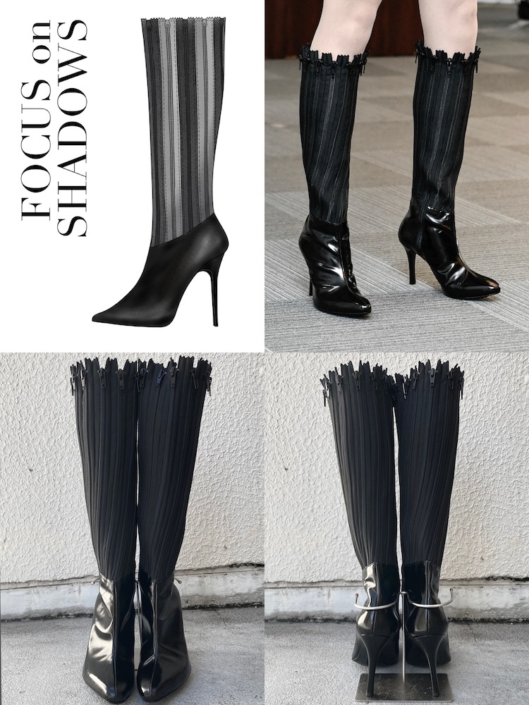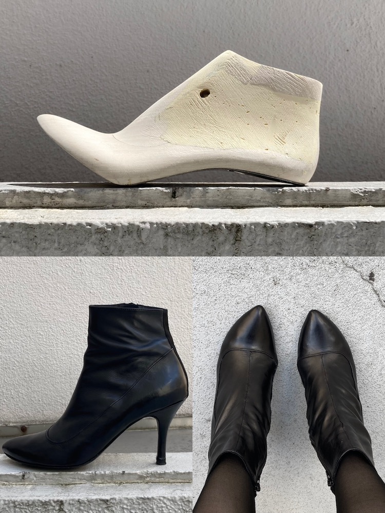 自分らしいデザインを模索することに力を入れました。自分が何に対して魅力を感じるのかを知るために、イメージボードを作ったり美術館や展覧会に通ったり、それをもとになぜそれが良いと思ったのか分析したり。どのように足や身体を魅せたいのかを知るために、色々なブランドの靴を履いて自分の理想型を探したりと、自分のデザインや美学を深掘りする作業にたくさんの時間を使いました。なんとなくいいな、と感覚的に思っていたものを繰り返し考えることで、自分らしさを構成する要素を一つ一つ見つけることができました。