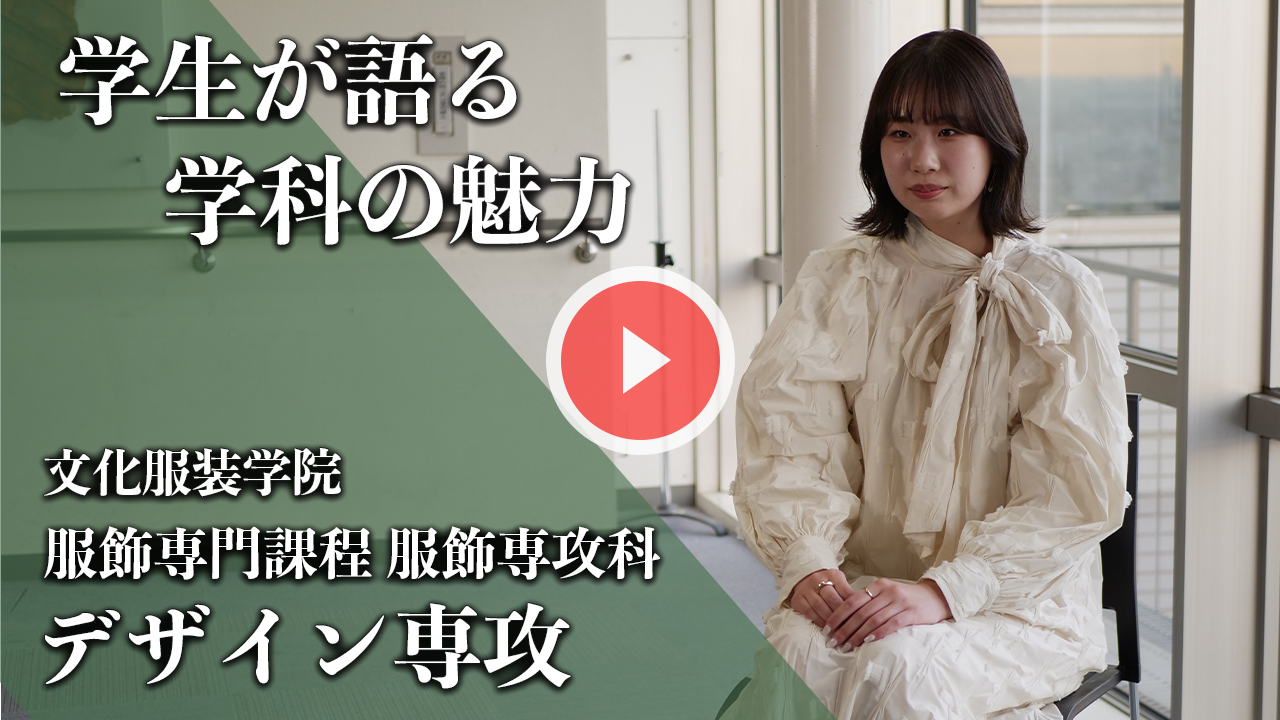デザイン専攻では、表現力にしっかりと磨きをかけてデザイン性も高めながら、それを実際の服にするために必要なパターンや縫製など、服づくりのノウハウをしっかりと身につけます。本革から伸縮素材、ベルベット、スパンコール、ケミカルレースなど難しい素材を扱いますが、それらの素材を生かすための高度な技法をきちんと学ぶため、表現の幅が広がり、より多くのものがつくれるようになります。何よりこの専攻科は、デザインを追求するだけあって、本当に個性豊かな人が集まっています。留学生を通して異文化に触れられたり、服飾研究科から進級してきた人生経験が豊富な人からは効率的にものごとを進めるコツを教えてもらったりと、ファッション以外にも日々学びがあります。コンテストやコラボレーションに参加できる機会も多く、積極性さえあれば、この科で得られるものは本当に大きいと思います。