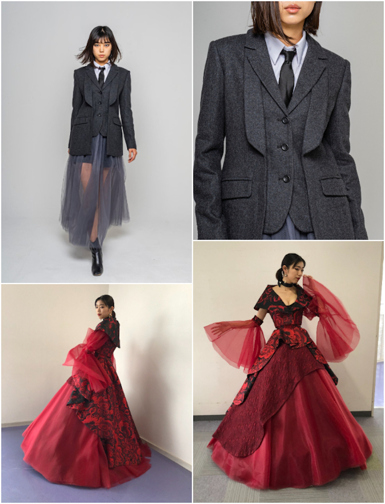 母親は文化学園大学出身でデザイナーとして働いた経験があるため、私が小さい頃からダンスやピアノなど習い事の発表会の衣装や普段の服をいつもつくってくれていました。その影響か、自然と自分も服をつくりたいと思うようになり、母からは服づくりを学ぶなら文化服装学院のアパレル技術科が一番良いと言われて文化を意識するように。高校卒業後、一度はファッションを諦めて大学に進学したのですが、高校時代に引き続き、毎年文化祭は見にきていました。そうして大学生活の中で自分と向き合ううちに、自分の中で服づくりへの情熱が蘇ってきて、たとえ回り道になっても、人生の中で本当の好きなことに真剣に取り組んでみる時間があってもいいのではないかと気持ちが変化。大学卒業後に文化に入学し、本格的に服づくり学ぶ決意をしました。