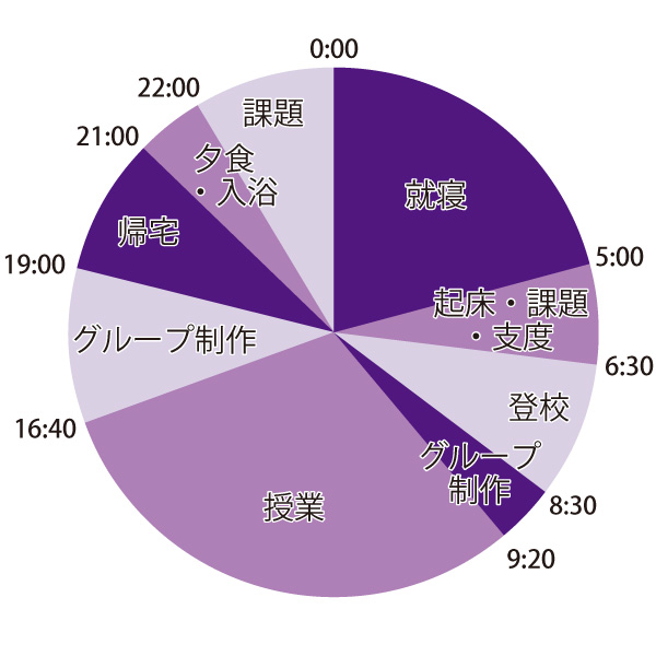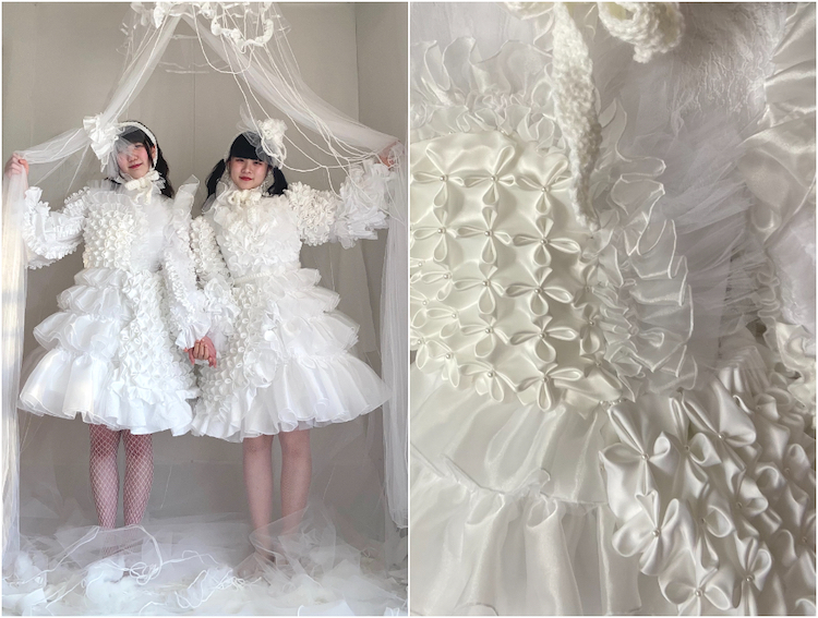 服装科1〜2年生の間は平日にもアルバイトをしていましたが、オートクチュール専攻に進学してからは、想像以上に課題で忙しくなったため、アルバイトは長期休みに限定して、普段は学業に集中しています。家から学校まで2時間かかるため、レポートなどスマートフォンを使ってできる作業は通学中の電車内でこなしています。個人制作の課題に大好きなニットを取り入れたかったので、電車では編み物をすることも。学業以外では、衣装見たさに大好きな舞台公演を観にいき、いろいろとインプット。同じ作品を何度も観て、角度によって衣装の観え方がどう変わるのかも研究しています。時間に余裕のあるときは、仲の良い友達とドライブや岩盤浴を楽しんでいます。