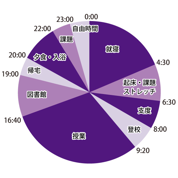 朝に課題を手がけ、放課後は図書館で資料集めが日課に。