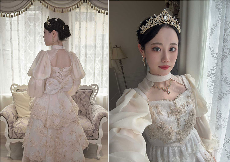 小学生の時にTVで見たデザイナーの伊藤羽仁衣さんが手がけるドレスに一目惚れ。それからドレスデザイナーを志し、高校は服づくりができるところを選びました。文化服装学院は卒業後の進学先で候補に挙がっていた一つで、他の服飾学校では見かけないオートクチュール専攻があったからです。入学の決め手になったのは文化祭のファッションショー。キラキラしたステージや作品に魅了され、「ここしかない!」と思い、入学を決意しました。