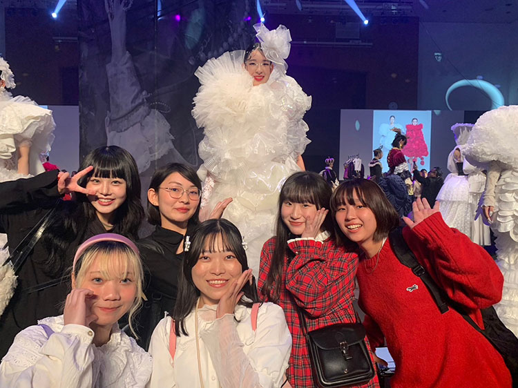 入学の決め手となった文化服装学院の一大イベントに、3年連続で衣装縫製として参加しました。感動した側から感動を与える側になって感慨深かったです。最後の3年次はクラスメイトが考えたデザインを、大好きなメンバーと一緒に制作することできて最高の思い出になりました。卒業して社会に出たら、ここまでクリエイティブに富んだ大作をたくさんの人たちと協力して手がける機会はそうそうないと思います。課題と並行して取り組むので大変ではありますが、絶対に学生の今しかできません。これから文化服装学院に入学される方は、文化祭のファッションショーの係にぜひ参加してみてほしいです。