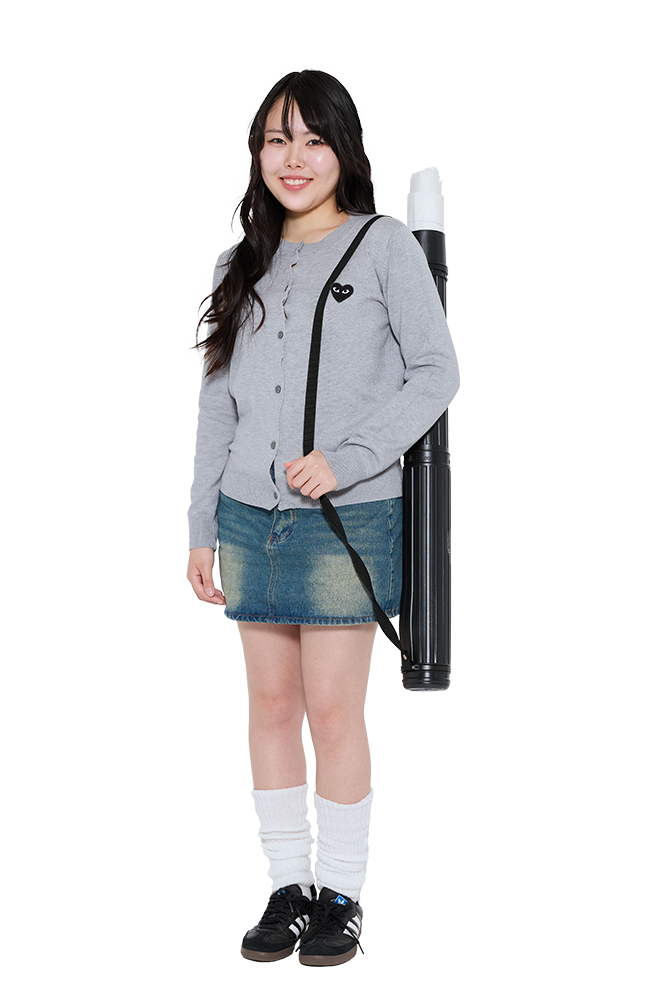服づくりからビジネスまでファッションを総合的に学べると思い、私はこの科を選びました。文化にある全学科のカリキュラムを凝縮させた感じ。だから私たちは文化服装学院にあるさまざまな設備を一番多く使っている科かもしれません。服づくりの経験がなくても大丈夫です。最初の2年間は基礎を叩き込むので苦労しますが、3年目に入ると選択授業が増えて自分のやりたいことに専念できるようになり、気づくと4年間で服から小物まで、しかもこの科だけできる「プライベートコレクション」も手がけられるようになります。ミシンはもちろん、コンピューターニット、3DCAD、グラフィックやプレゼン資料で必要となるパソコンなど、幅広いスキルが身につき、頭にあるイメージを可視化する力がつくので、デザイナーだけでなく、スタイリストやディレクターに興味がある人もこの科は向いていると思います。