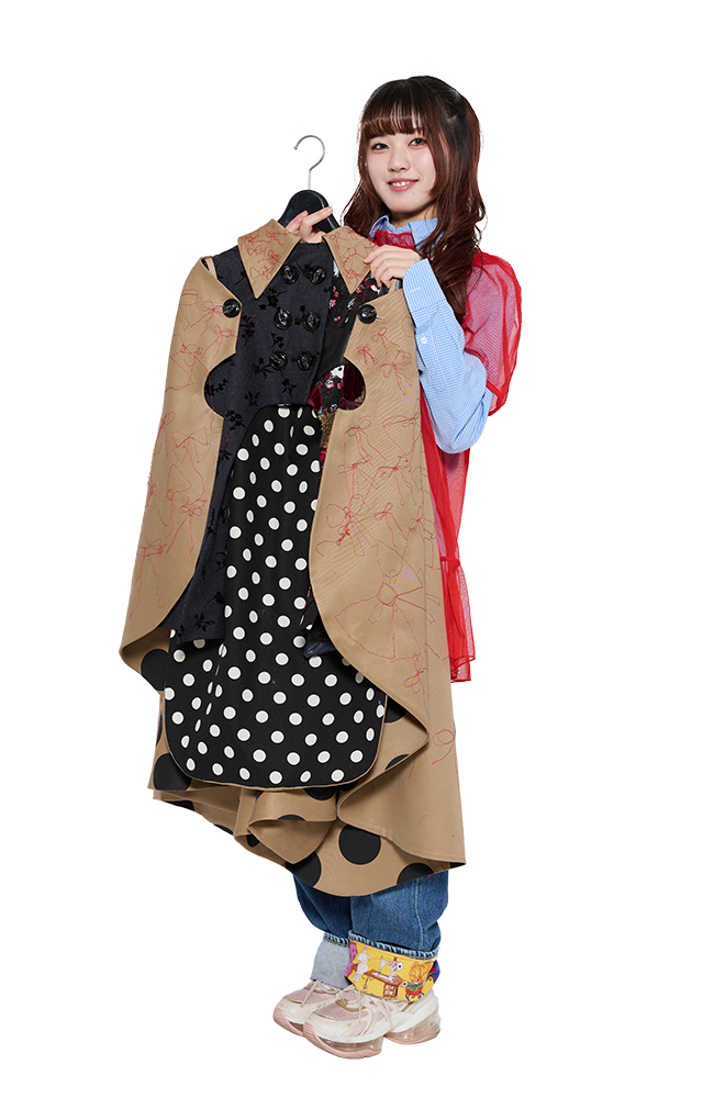 母が文化服装学院の卒業生、しかも伊勢丹で働いていたこともあり、私は小さい頃からいろんな服に触れてきました。だからファッションが好きになることも、服飾学校に進学することもごく自然だったと思います。志望校として文化服装学院は挙がっていましたが、他の学校もいくつか気になっていたので、それぞれの文化祭に行って決めることに。結果、一番心に響いたのが文化服装学院でした。ファッションショーで見た作品も、教室に展示された作品も、どちらもクオリティが高かった。学校全体の雰囲気も私にはピンとくるものがありました。後日、母に「文化服装学院に行きます」と報告。卒業生の中には、私のように二世代で通っている人もいれば、三世代で文化服装学院に通っていた人もいるようです。